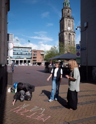Naast het krijten en posten gaat het collectief ook op andere manieren het gesprek aan. Zo zijn ze op uitnodiging van de gemeente betrokken geraakt bij Orange the world, een internationale campagne tegen geweld tegen vrouwen. “We werken ook vaak samen met de GGD en Centrum Seksueel Geweld, bijvoorbeeld door deel te nemen aan panelgesprekken. En we krijgen vaak interviewverzoeken van jongeren die journalistiek studeren. Het is fijn om te zien dat veel jongeren geïnteresseerd zijn in wat we doen.”