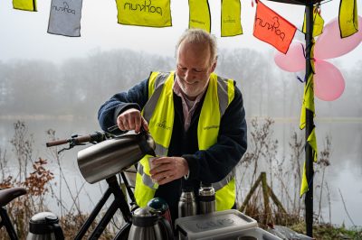 Op een mistige zaterdagochtend fiets ik naar het Stadspark. Daar vindt iedere zaterdagochtend de Parkrun plaats; het parcours is 5 km. Zo’n vijftien vrijwilligers zorgen voor aanmoediging tijdens de loop en tijdmeting bij de finish. Na afloop is er koffie en thee, gemaakt door Jan van der Schans. Hij vertelt dat de Parkrun zes jaar geleden in Groningen startte, maar na twee keer afgebroken werd door corona. Vanaf de herstart is Jan erbij betrokken. Inmiddels doen er iedere zaterdag ruim honderd mensen mee. Voor aanvang heet de run director iedereen welkom; nieuwe deelnemers en ‘parkrun-toeristen’ worden met een applaus begroet.
