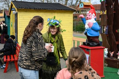 Het festival wordt georganiseerd door talloze vrijwilligers. Xandra Bardet doet al jaren mee. Ze beschilderde alle sta-meubels, zit de ene keer te schminken en dan weer voorziet ze iedereen van een drankje bij de limonade-kabouter. Overigens is Xandra ook een van de aanstichters achter het Zwerfvuilteam, dat iedere maandagochtend een opruimrondje door de wijk doet.